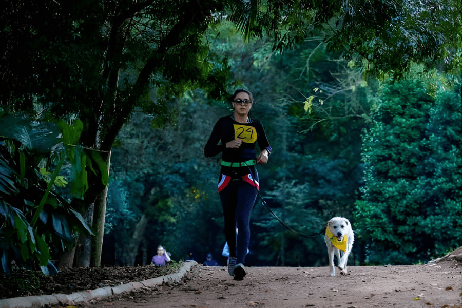 Um exemplo muito claro desse impacto é o Valentino: um cão que apresenta reatividade com outros cães. Em um treino de canicross, ele utilizou uma bandana amarela para sinalizar que precisava de distância. A partir desse combinado visual, as pessoas respeitaram o espaço dele, e o Valentino conseguiu participar do esporte com outros cães sem incidentes.